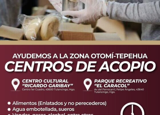Centros de acopio oficiales en Tulancingo: Centro Cultural “Ricardo Garibay” y el Parque “El Caracol”