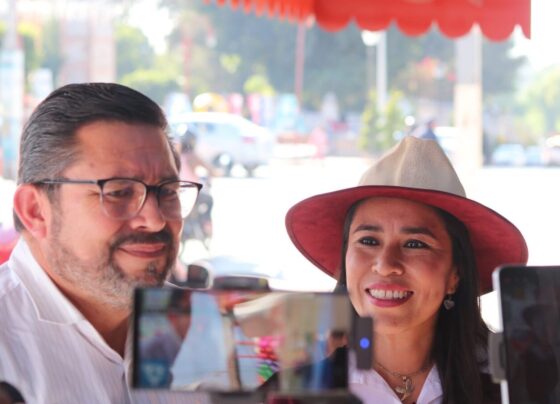 La senadora de Morena por Hidalgo, Simey Olvera Bautista, y el presidente estatal de ese partido, Marco Rico Mercado, se…